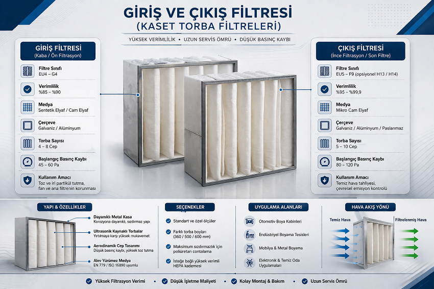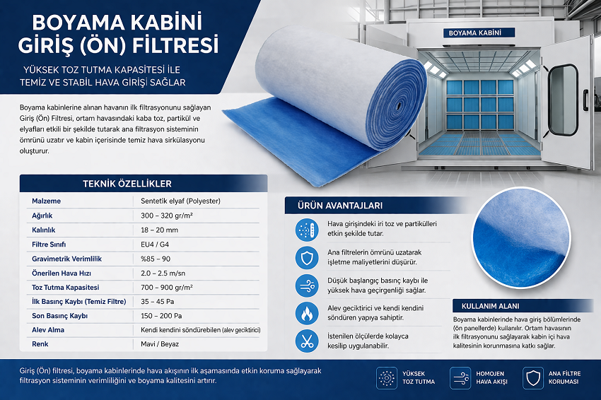 Boyama ve kurutma kabinlerinin Tavan Filtresi, Ön Filtresi, Zemin Filtresi Giriş ve Çıkış Kaset Akordiyon Filtresi satışı